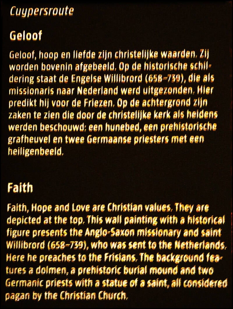 We zien dus dat er door een beeld heel gemakkelijk een verhaal kan ontstaan en dat verhaal dat kan een eigen leven gaan leiden in de mens. Maar wat we ook moeten weten is dat het beeldverhaal ook een geheel ander verhaal kan vertellen dan dat we aanvankelijk zullen denken. Ik fotografeerde de beelden en kwam er achteraf achter dat er met veel woorden er een heel ander beeld kon ontstaan dat aanvankelijk eerst tot mij was gekomen. Ik was geraakt door het kleurgebruik en de sprekendheid van het beeld van vaak vele eeuwen geleden. Tot mij komt pas later tot uiteing dat de vermening met de andere vormen van communicatie mij een veel duidelijker beeld kunnen geven van het werkelijke verhaal. Eigenlijk is dit met alles zo. Vanuit de Bijbelteksten die ik vanmorgen tot mij nam, bleek het zeker heel erg belangrijk om uiteindelijk met een geheel van het verhaal even in afzondering te kunnen gaan verkeren om iets werkelijk tot mij te kunnen nemen als WERKELIJKE LIEFDE.